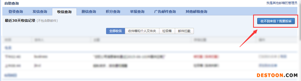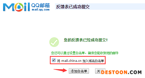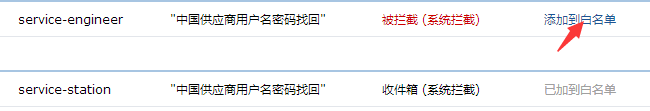 您可以按照以下步骤操作来恢复—— 1. 打开QQ邮箱后,在“收件箱”处右击鼠标,并选择“收信查询”(如下图): 2. 找到来自贸易站的邮件,点击“添加到白名单”,再回到您的收件箱查看邮件即可(如下图): 为防止以后仍被QQ邮箱拦截,您可以把来自贸易站的邮件添加到白名单,操作步骤如下—— 1. 在收信查询界面,点击右上角的“投诉”按钮(如下图): 2. 信件来源填写:mail.dtmuban.com,并点击“发送报告”(如下图): 3. 勾选“将 mail。dtmuban.com 加入域名白名单”,并点击“添加白名单” 。以后QQ邮箱就不会拦截贸易站的邮件了(如下图):