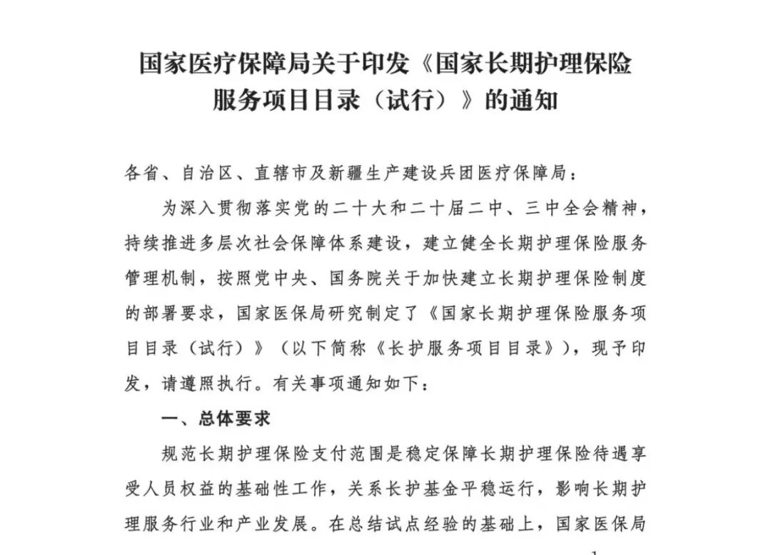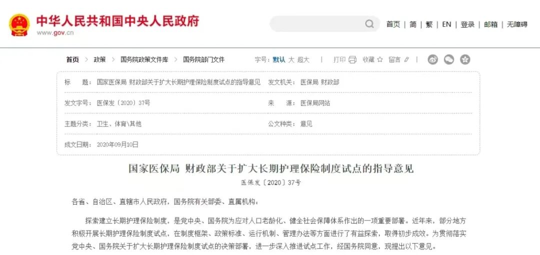 国家医保局和财政部发布的《关于扩大期护理保险制度试指导意见》部分
